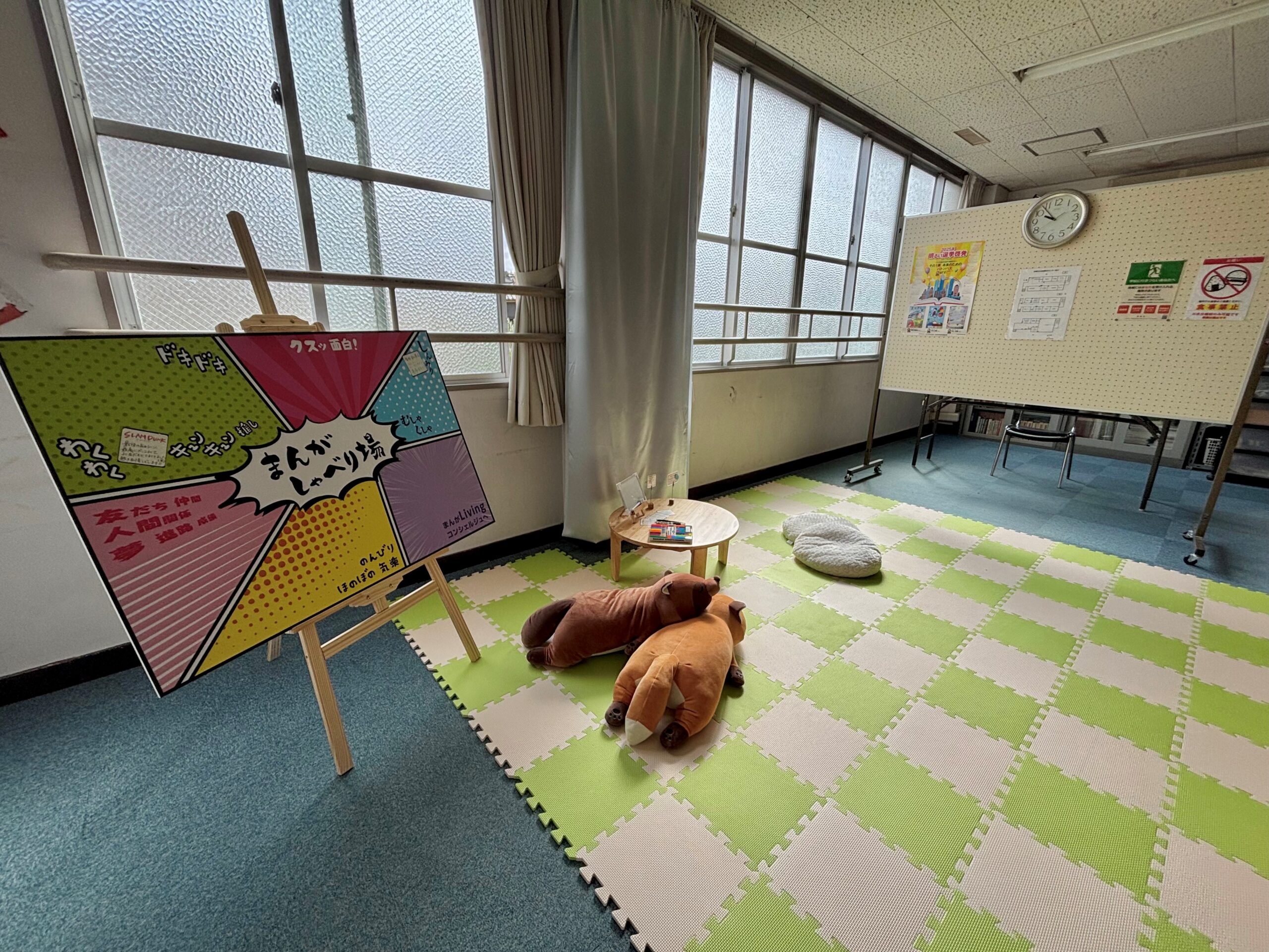 ↑マットの上でリラックスしてまんがを読むことができます