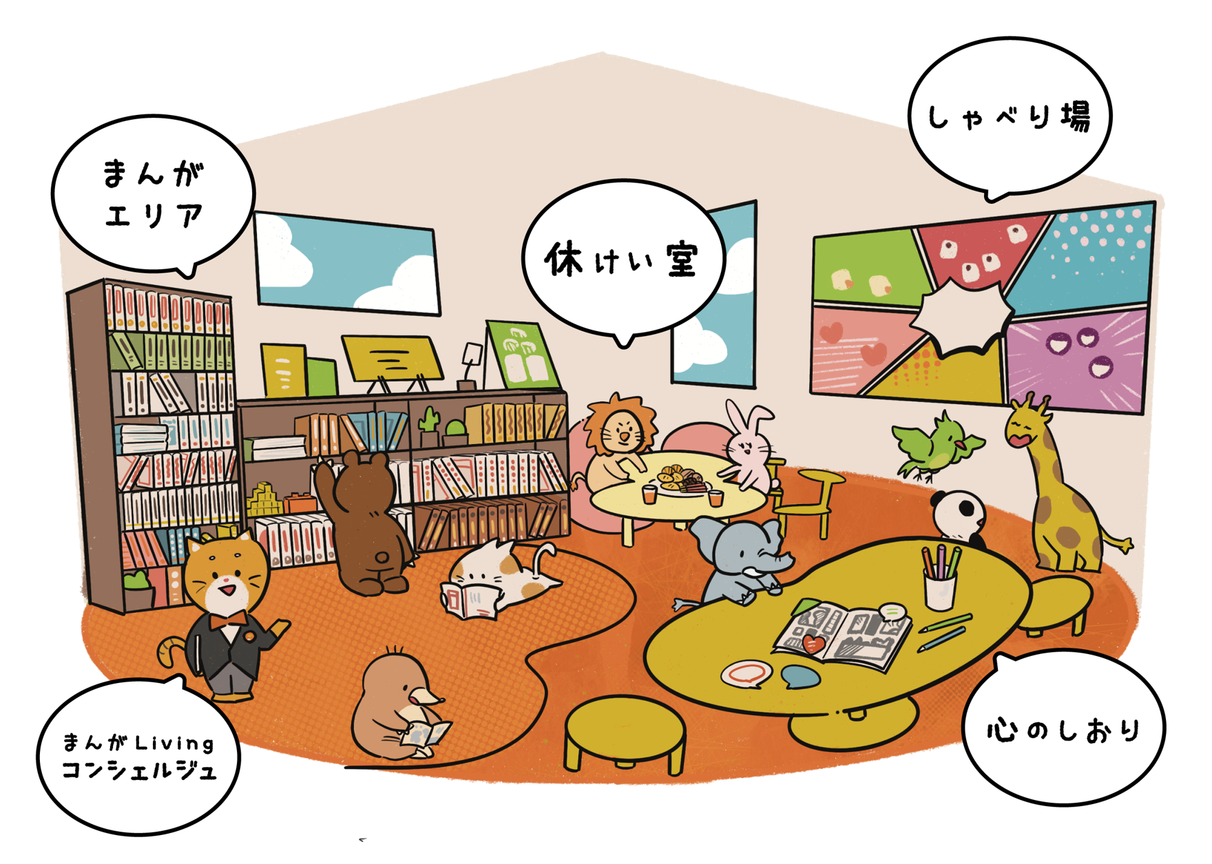 ・まんがLivingをご利用の際は、はじめに1階窓口で受付をお願いいたします。