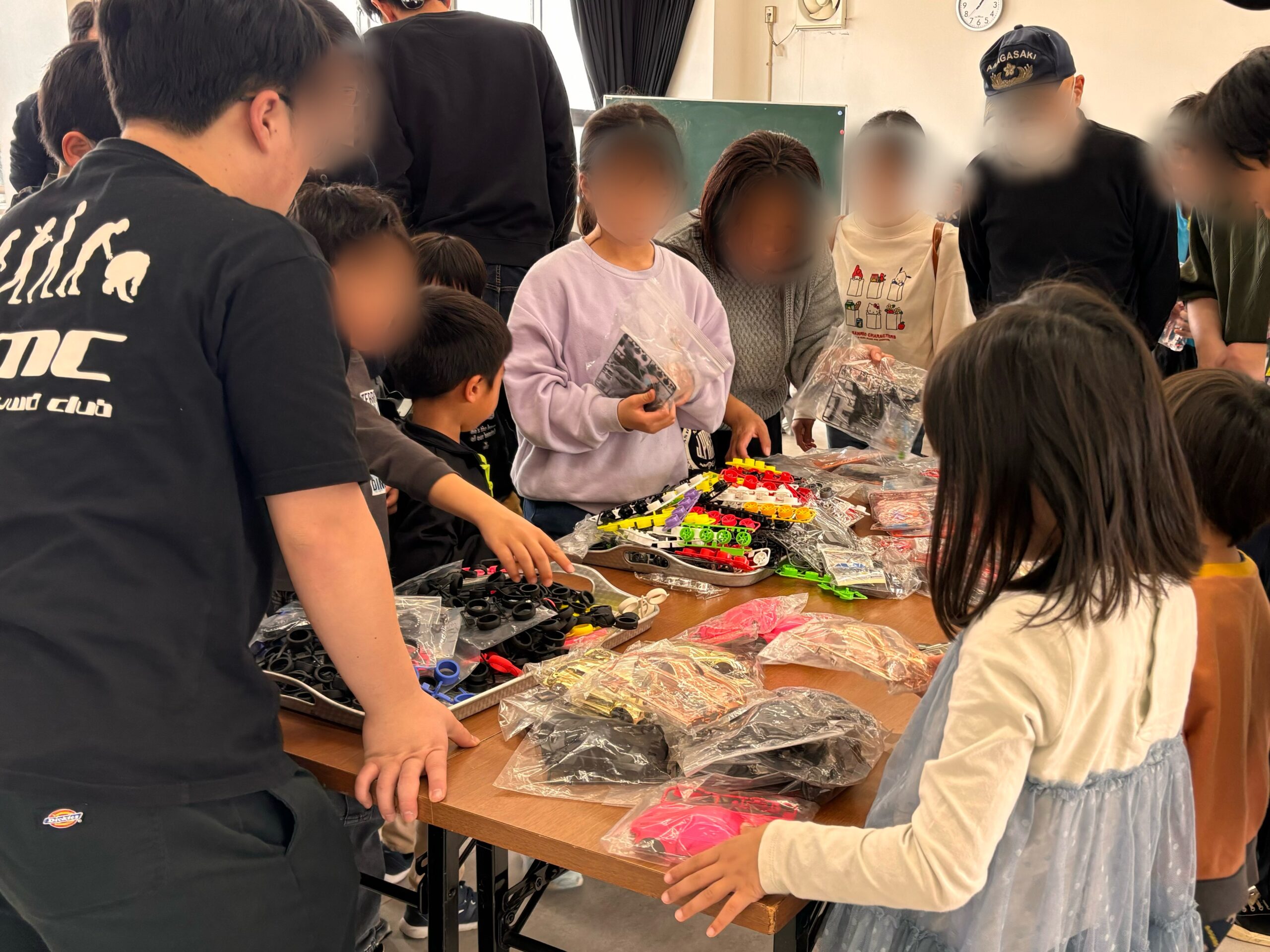 不用になったジャンクパーツを用いてミニ四駆を作るイベントです。SDGsを学びながら楽しく物作りができるワークショップは毎回大好評で、今回も地域の小学生たちが集まってくれました。